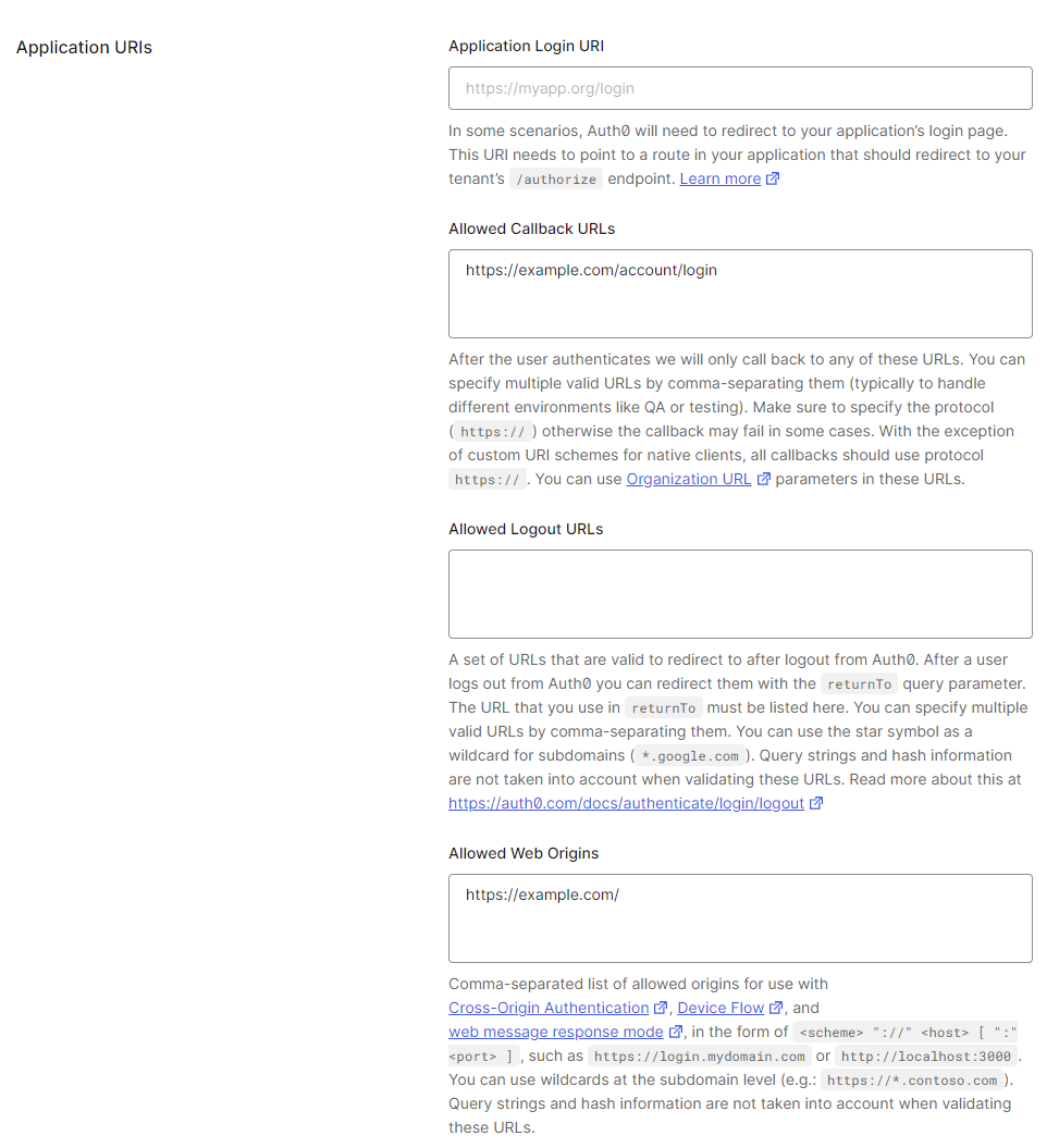 https://AUTH0_DOMAIN/, whereAUTH0_DOMAINis defined in the sectionBasic information -